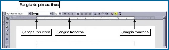 -Sangría a la izquierda: Con la que podemos marcar la separación de todas las lineas de un párrafo con respecto al margen izquierdo del texto.